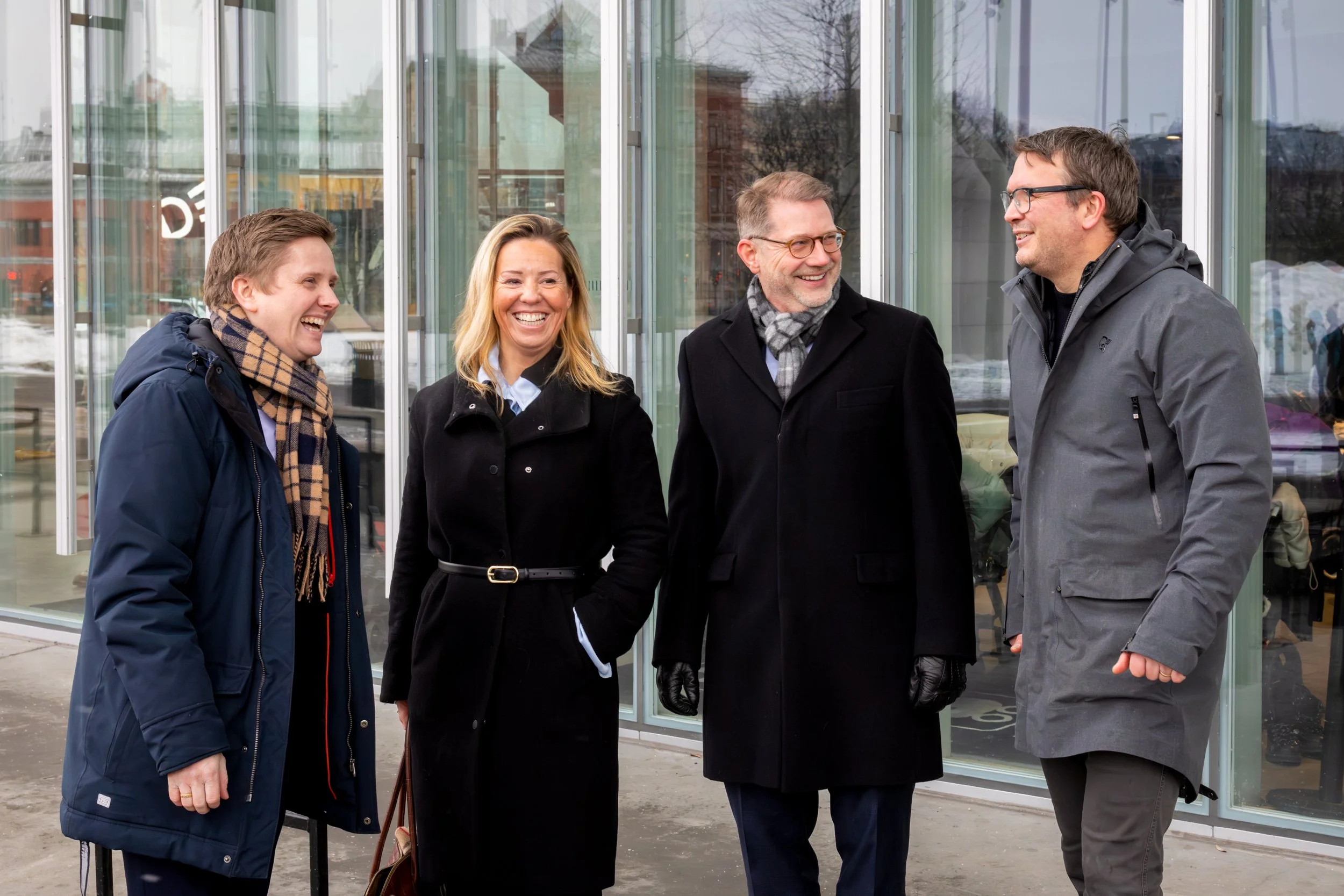 Fra venstre: daglig leder i Norsk Datasenterindustri, Reynir Jóhannesson; daglig leder i Norsk Fjernvarme og Overskuddsenergi, Oda T. Gipling; Partner i Ræder Bing advokatselskap, Reidar Sverdrup; administrerende direktør i Asplan Viak, Per Christian Randgaard. Foto: Hans Kristian Thorbjørnsen.